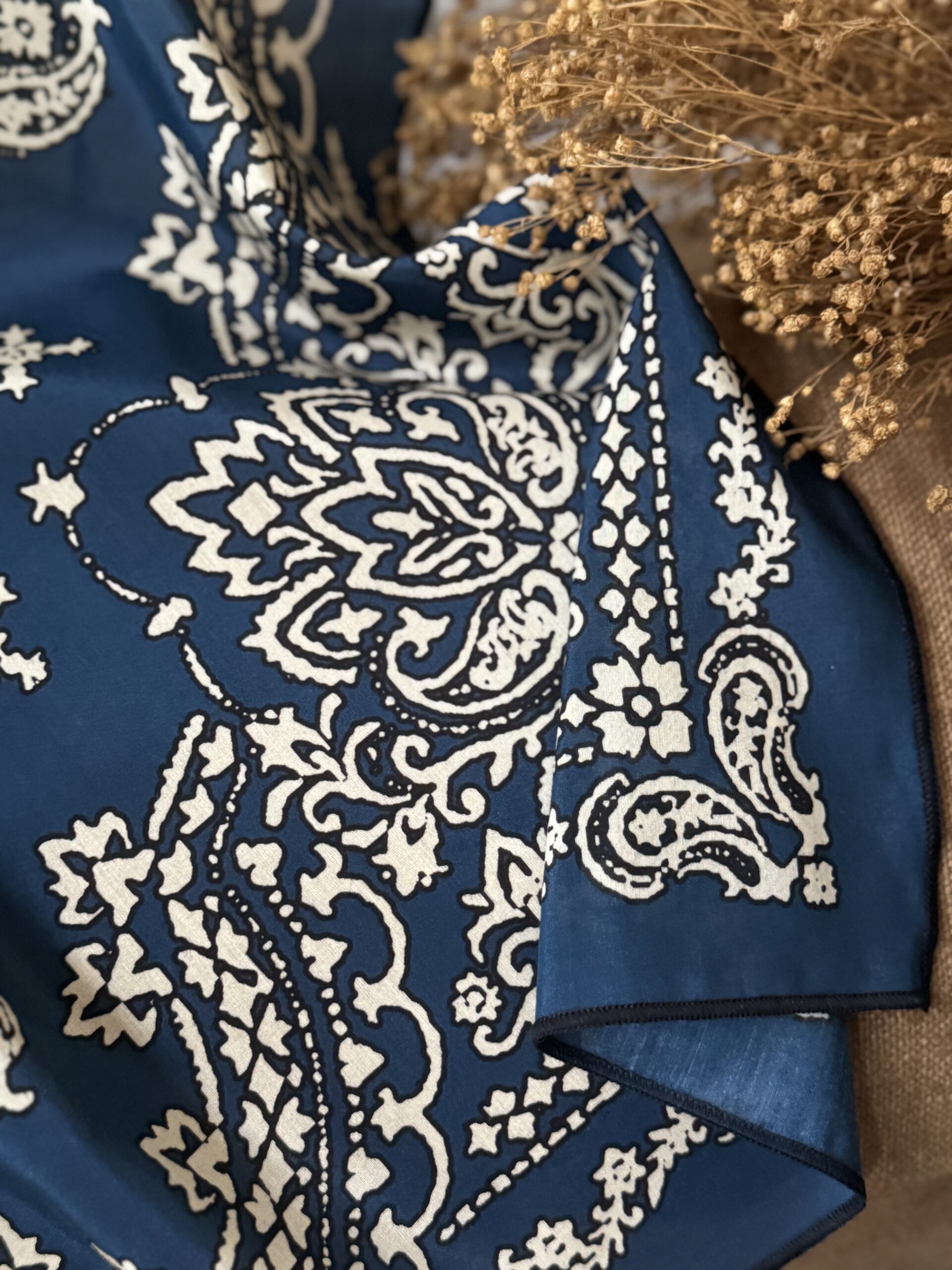 Bandana en édition limitée, fabrication Italienne, imprimé créé pour my Sunday Morning. Dimensions 58X58cm.