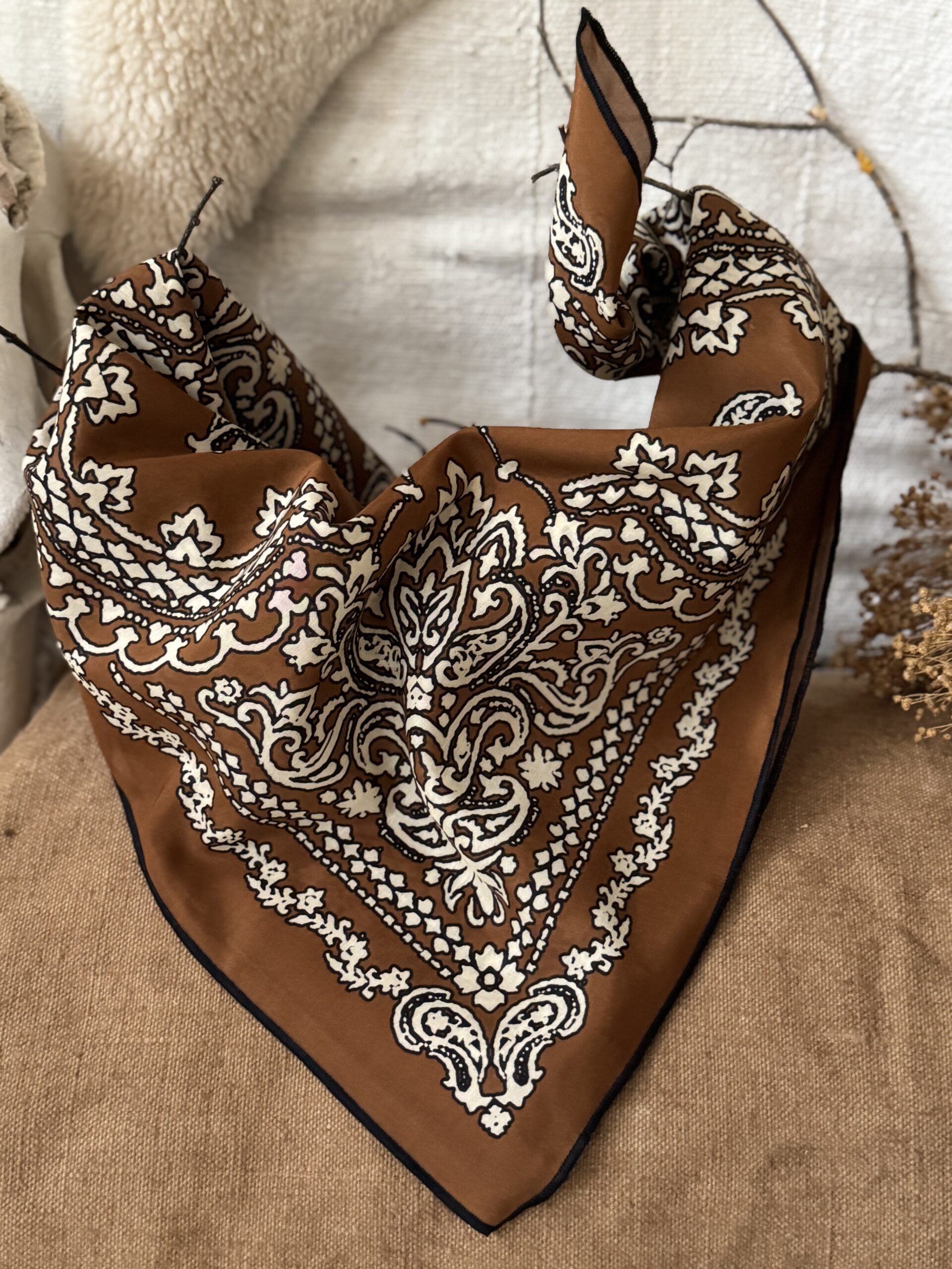 Bandana en édition limitée, fabrication Italienne, imprimé créé pour my Sunday Morning. Dimensions 58X58cm.