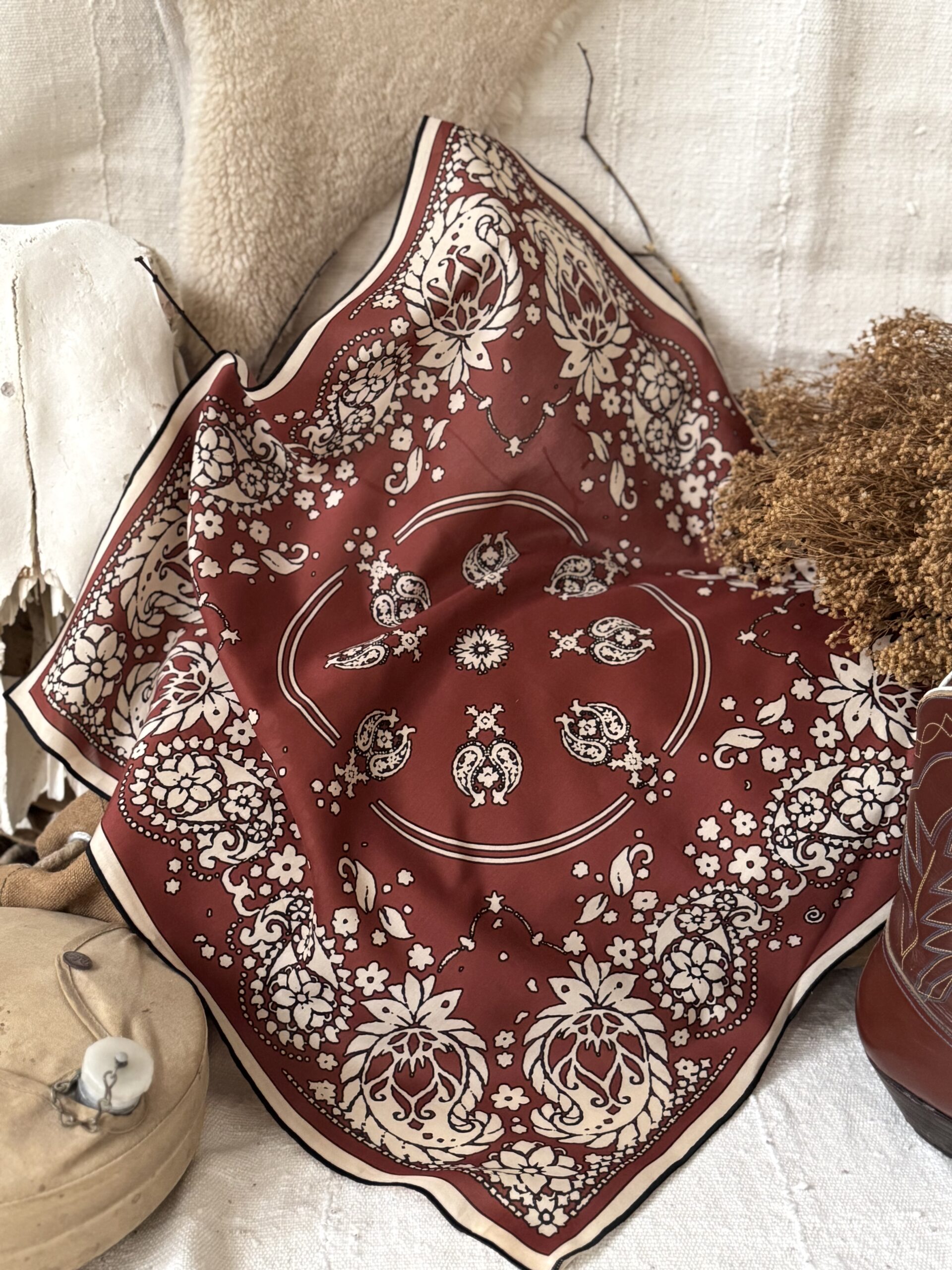 Bandana en édition limitée, fabrication Italienne, imprimé créé pour my Sunday Morning. Dimensions 58X58cm.